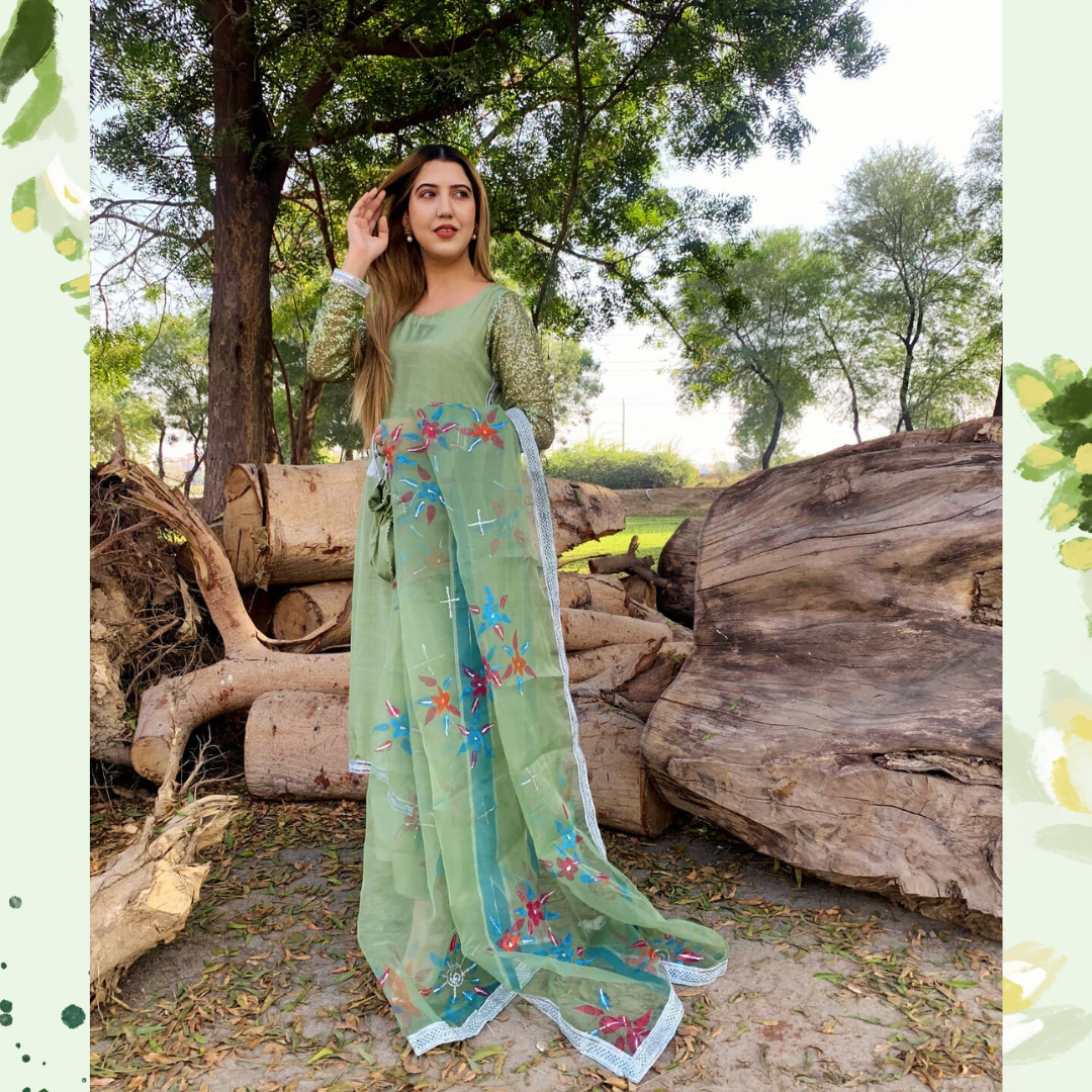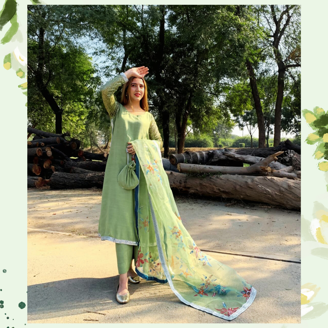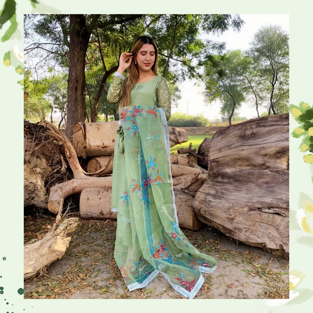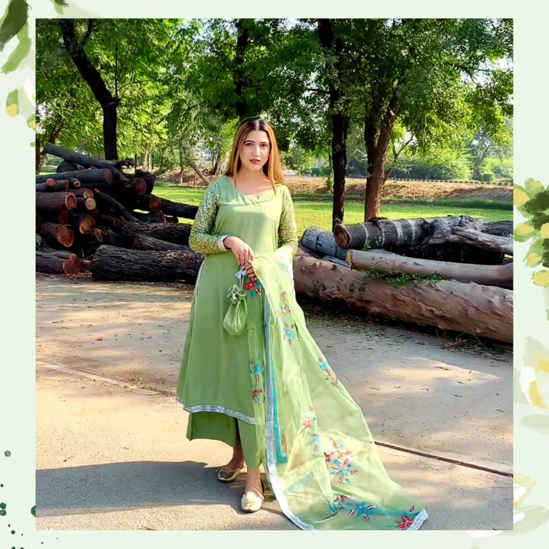 Elegance in every thread. Miraal is a 3-piece ready-to-wear masterpiece in raw silk, featuring exquisite silver lace detailing and sequined sleeves. Complete with a hand-painted organza dupatta, finished with delicate silver lace for that perfect touch of grace. A timeless addition to your wardrobe. ✨ Shop Now!